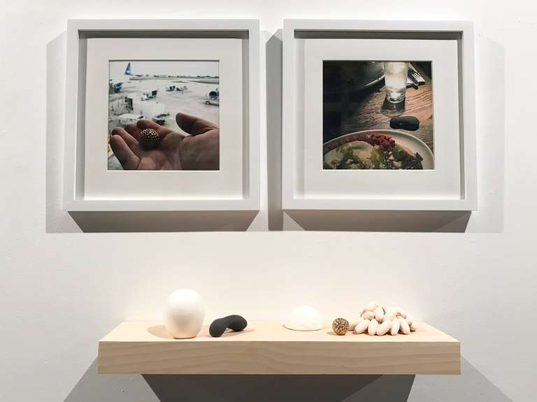 Longer Description: "Things That Want To Be Held…That I Want To Hold" was a collaborative performance that took place from October 2017 until July 10th, 2018. The project attempted to emulate the multiple stages of childbearing through the use of durational performance, sculptural ceramics, and social media. On a conceptual level, "Things...Held" examines the ritual of couvade, a process by which an expecting father accepts physical discomfort throughout the ongoing months of pregnancy. Throughout various stages of their relationship, Blanca Echeverria created embryonic sculptures that were appropriated by her partner, Paul Echeverria. Upon receiving news that the couple was expecting a child, Paul vowed to care for the sculptures by keeping them on his person at all times. This action was intended as an act of symbiosis between the expectant parents. The durational aspect of the work was performed for a period of 9 months by both members of the collaboration. Whereas Blanca accepted the responsibility of carrying their prenatal child, Paul participated in the pre-birth process by acting as a caregiver for the ceramic embryos. In addition, the couple invited viewers to participate by displaying care for the nascent sculptures. The performance concluded on July 10th, 2018 and coincided with the birth of their first child. "Things That Want To Be Held…That I Want To Hold" remains accessible via a permanent digital archive. A social media version of the project can be viewed via Instagram by searching the hashtag #ThingsHeld.